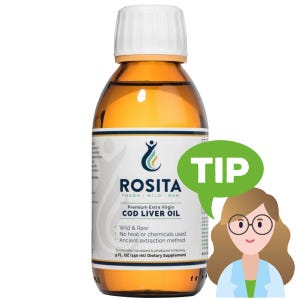Rybí olej značky Rosita je velmi kvalitním olejem, který je extrahován za nízkých teplot, bez chemikálií či mechanických tlaků. Olej pochází z jater tresky obecné, je z udržitelného lovu a neobsahuje žádné kontaminanty. Jeho nevýhodou je charakteristická slabá chuť po rybách, která není nijak kompenzována příchutí. Cena za denní dávku je vyšší – 38 Kč.